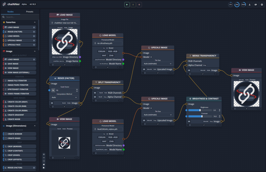 chaiNNer, yapay zeka destekli görsel büyütme ve toplu görüntü işleme için geliştirilmiş, akış şeması (node) tabanlı açık kaynaklı bir uygulamadır. Real-ESRGAN, ESRGAN ve diğer AI modellerini görsel olarak bağlanan düğümler aracılığıyla birleştirerek karmaşık işleme pipeline’ları oluşturabilirsiniz. Binlerce görüntüyü toplu olarak yüksek çözünürlüğe büyütmek, gürültü gidermek ve renk düzenlemek için idealdir. NCNN arka ucu sayesinde NVIDIA olmayan GPU’larda da çalışır. Windows, macOS ve Linux’ta ücretsiz kullanılabilir.